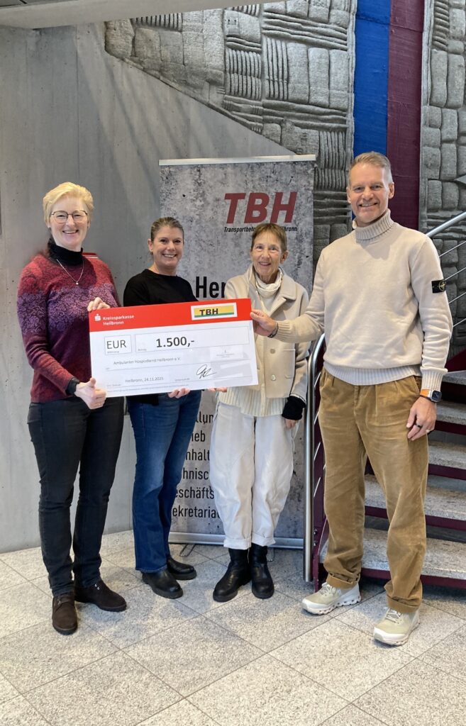 Mit großer Freude nahmen die beiden Koordinatorinnen des Ambulanten Hospizdienstes Petra Lutz und Nicola Hartung, gemeinsam mit der 1. Vorsitzenden Dr. Anna Christ-Friedrich, die großzügige Spende der Firma TBH-Beton in Höhe von 1500 Euro durch den Geschäftsführer Jörg Gröger entgegen. Wir sagen vielen Dank!